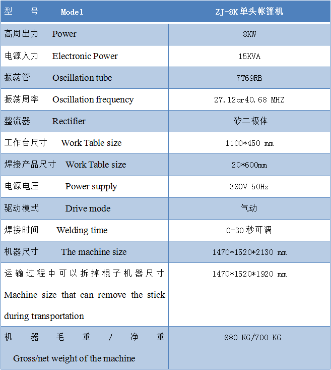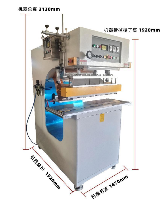 汽車篷布熔接高頻機可根據(jù)用戶需要,選擇不同高周波功率大小的機器,每次焊接帆布材料的長度及寬度,均可以通過 改變高周波模具的尺寸長短寬度實現(xiàn)帆布熱合需要。不同的帳篷焊接機的內(nèi)側(cè)設(shè)有相應(yīng)跨度的帆布放料。以滿足大面的汽車篷帆布、戶外帳篷布、電影幕布、膜結(jié)構(gòu)、戶外遮陽布、戶外廣告噴繪布、PVC布的熔接接駁。高頻機的鐳射定位為可選配置,方便每次焊接時定位。